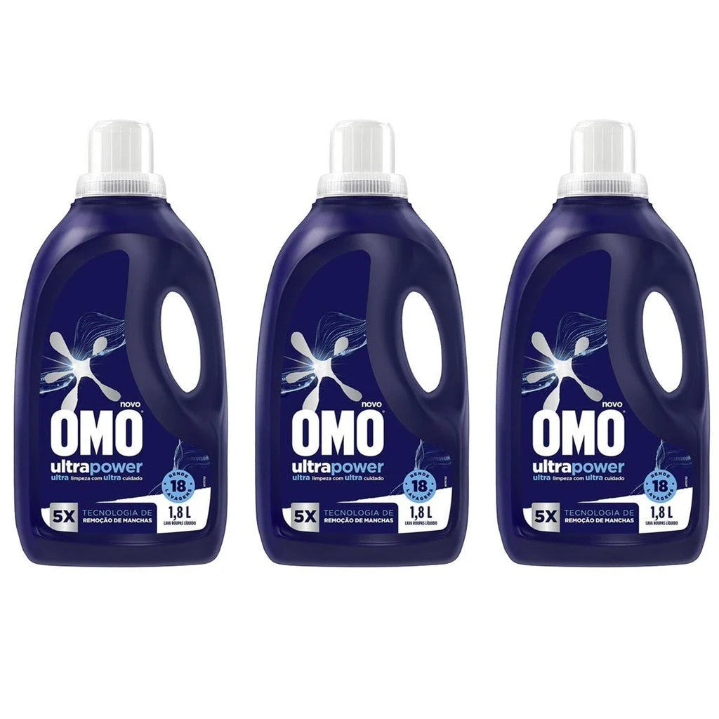 Kit 3 Lava Roupas Líquido Omo Ultra Power 1,8L cada
